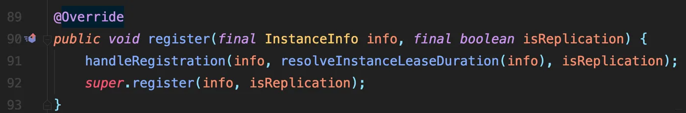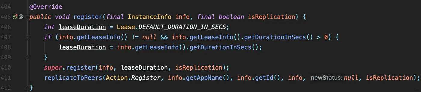 public void register(InstanceInfo registrant, int leaseDuration, boolean isReplication) {