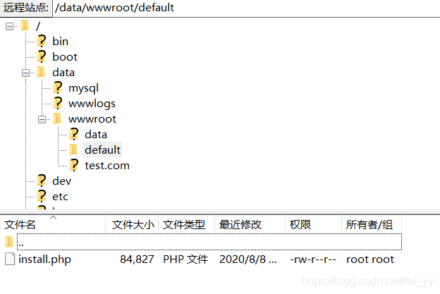 然后将解压的这个. php 文件上传到 / data/wwwroot/default 这个目录,用于一会在线安装。