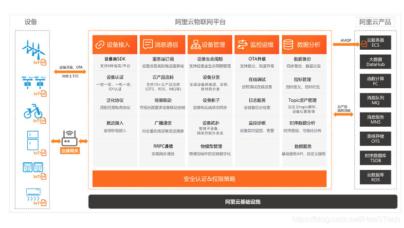 后台使用的是阿里云物联网平台,从架构上,阿里云物联网平台做了设备接入,消息通讯,设备管理,监控运维,数据分析,云端前后台的工作,实际上我们只需要熟悉平台的使用即可,这是一个能够缩减软件工程师的开发平台,帮助嵌入式开发工程师,在无需软件人员参与下,完成一整套物联网系统的全栈开发。