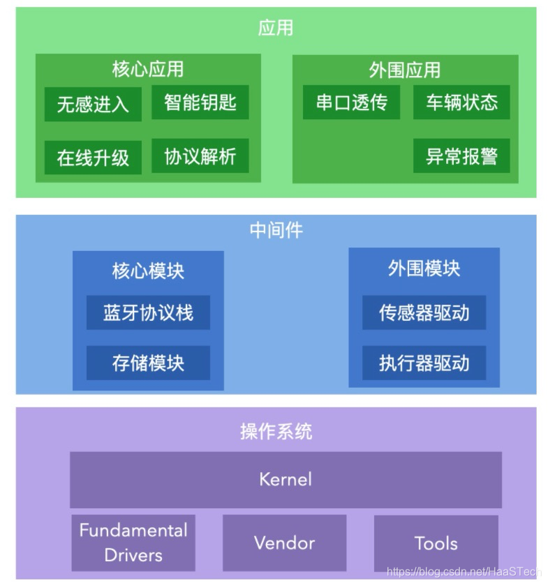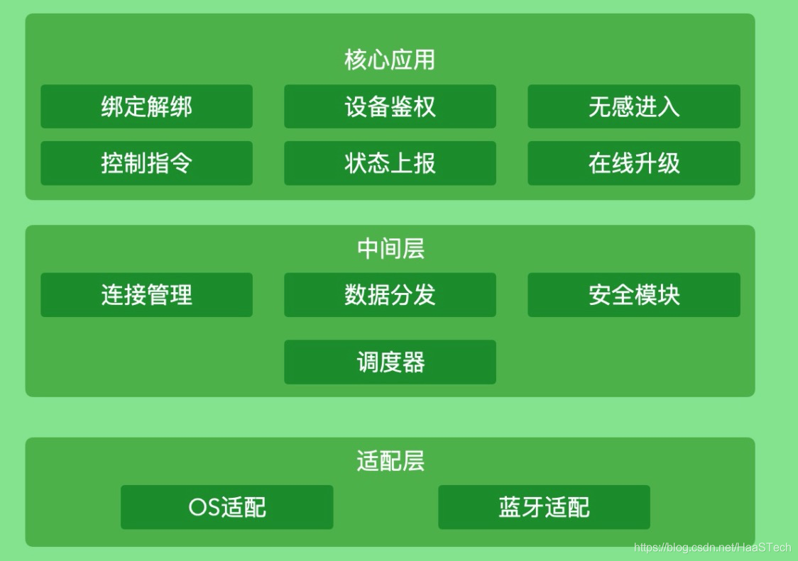 设备侧的软件架构如下,包括应用层,中间件与系统层。