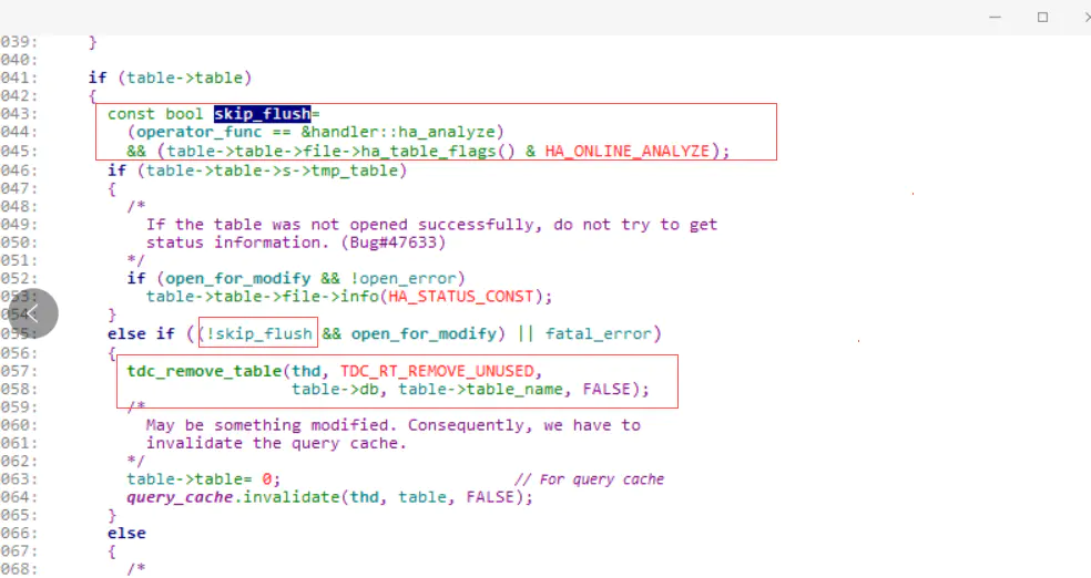 如此修改后analyze不会进入tdc_remove_table函数,那么table share的版本不会设置为0。因此如果使用官方版本小心本问题。