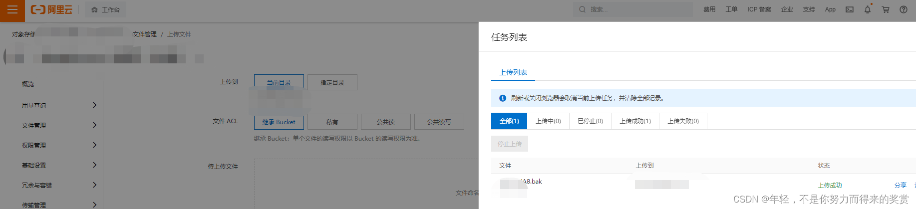2.1 2上传源数据库备份文件到oss桶中,尝试OSS备份恢复