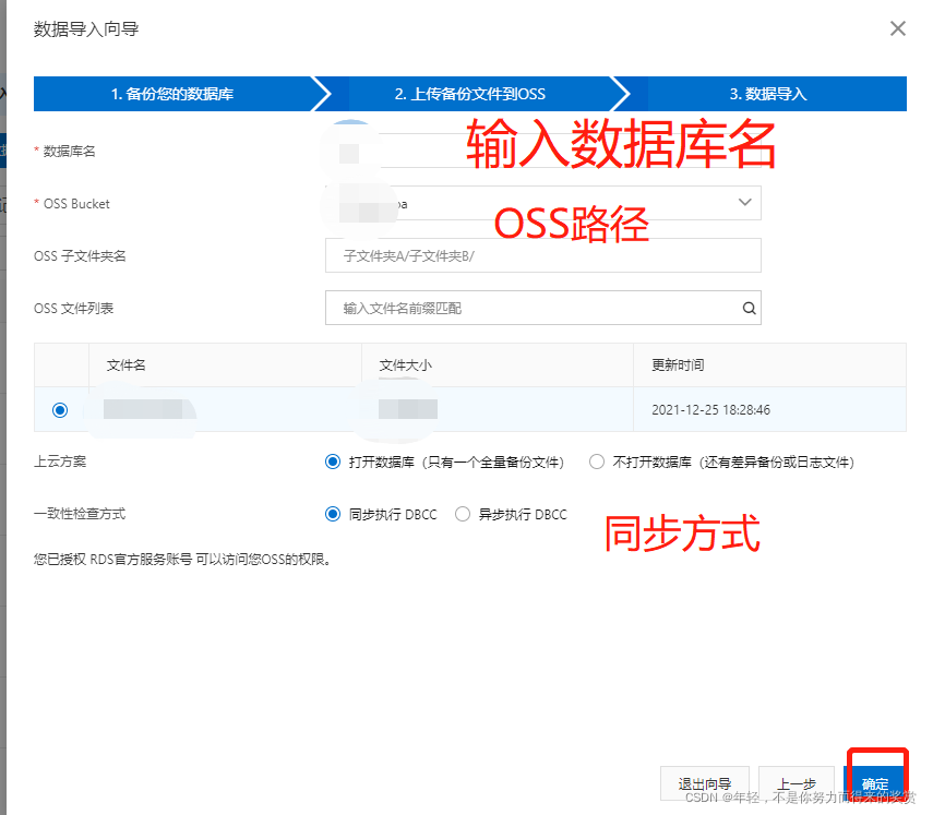 2.1.3 使用OSS备份数据恢复到新RDS-sql server数据库