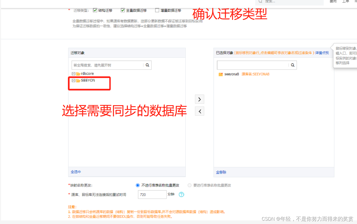 建议勾选增量迁移。由于此次迁移,数据库已经确保没有数据继续写入,所以直接选择了全量迁移。