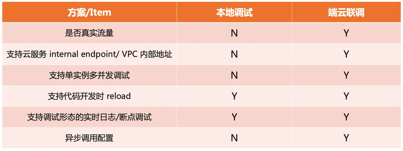 最后我们简单用一张表格总结本地调试和端云联调的差异: