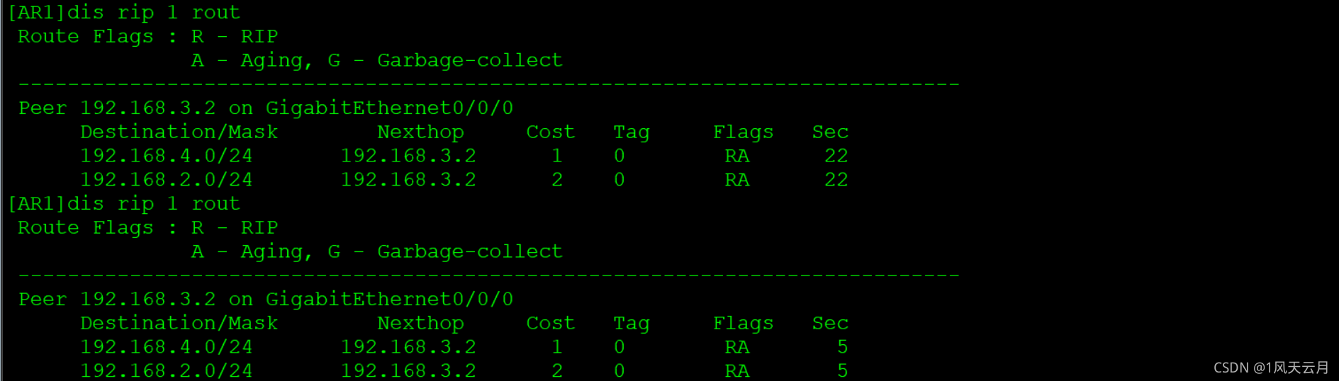 在设备支持的最大RIP路由数量一定的前提下,设备能够运行的最大RIP路由数量受RIP的cost值、RIP发送更新报文的时间间隔、RIP定时器Age和Garbage-collect数值的限制,当网络中存在大规模RIP路由时,对设备能够运行的最大RIP路由数量需求增加,可以根据实际情况,调整RIP定时器Age和Garbage-collect数值,减少RIP发送更新报文的时间间隔