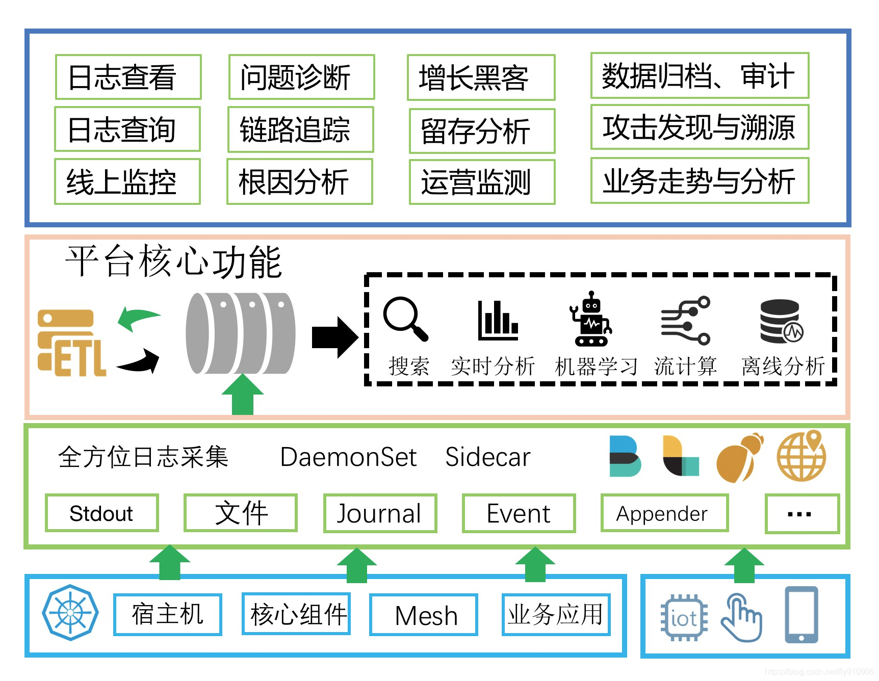 为满足上述这些功能需求,日志平台上必须具备的功能功能模块有: