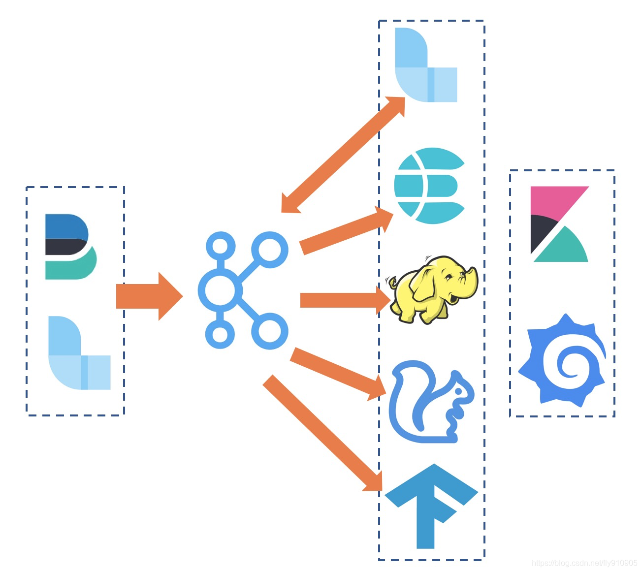 - 为了提供更加丰富的上下游以及缓冲能力,可以使用kafka作为数据采集的接收端。