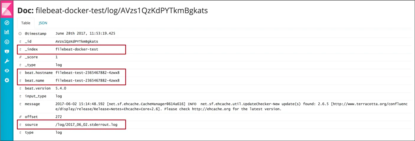_index值即我们在YAML文件的configMap中配置的index值beat.hostname和beat.name即pod的名称- source表示filebeat容器中的日志目录