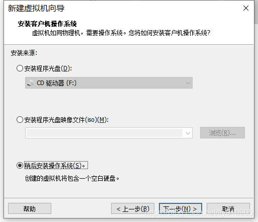 选稍后安装操作系统,下一步