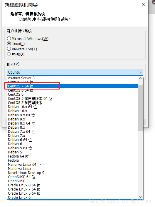 选Linux,并选择版本CentOS 7 64位,下一步