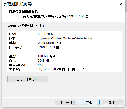 虚拟机创建完成