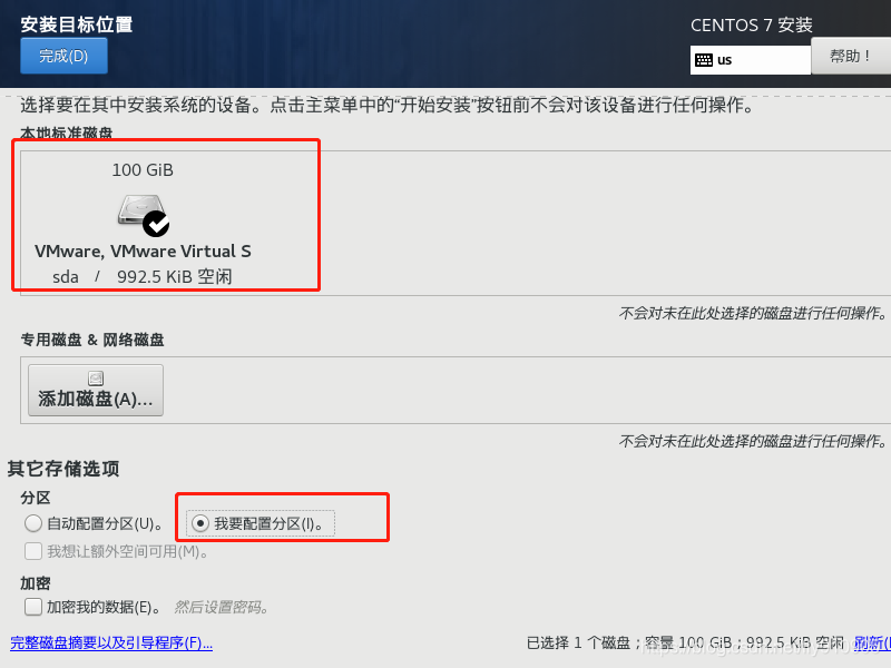 对磁盘进行分区,点击安装位置和我要配置分区,点完成