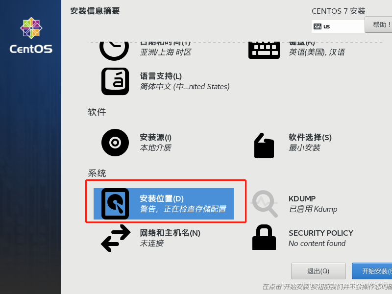 系统-安装位置-警告,正在检查存储配置