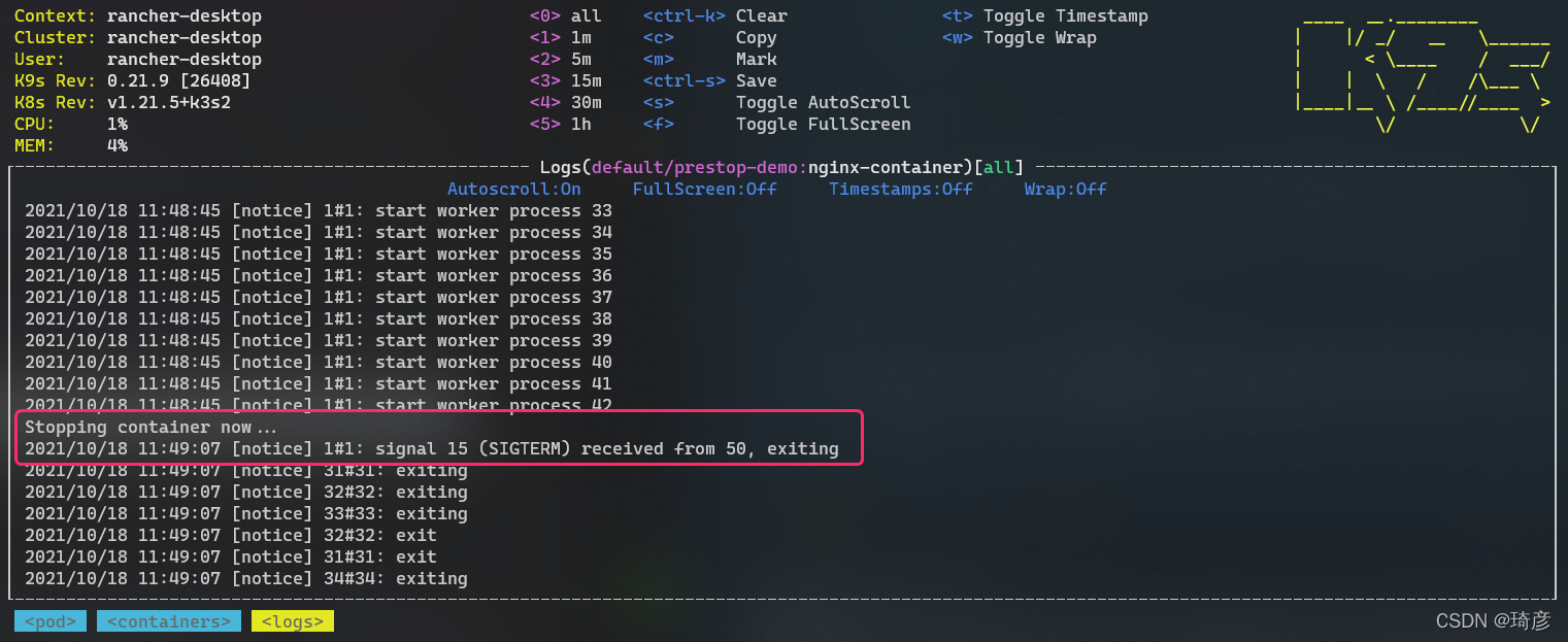💡 提示:你可以将preStop输出直接输出到 PID 1 标准输出,它最终会出现在应用程序日志中。接下来我们将使用这个技巧来跟踪 pre-stop 事件的执行。