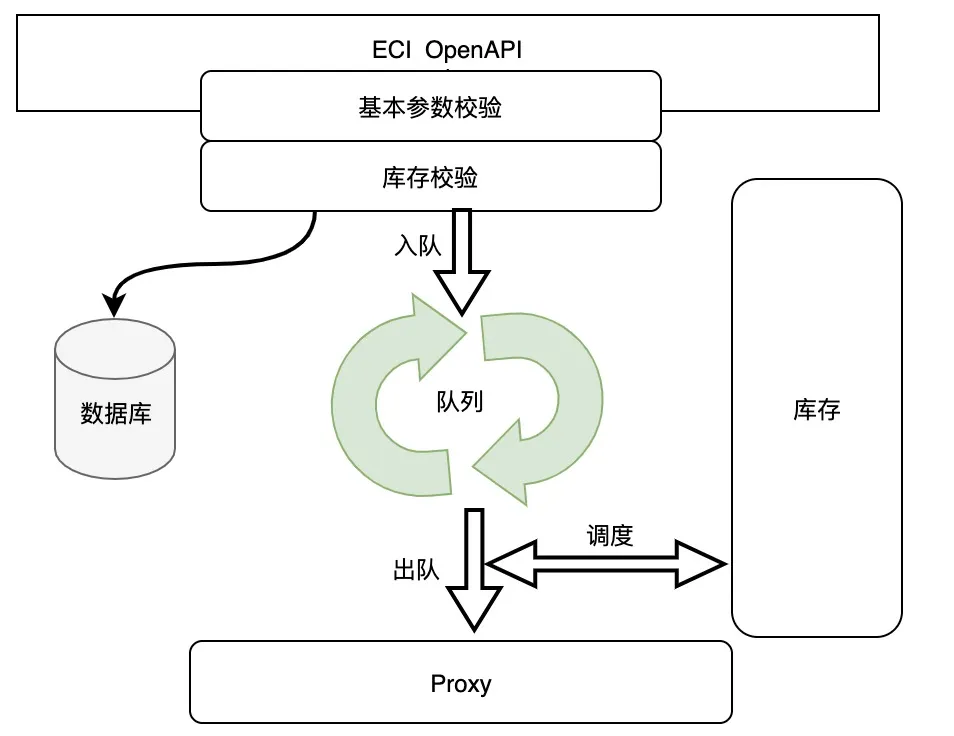 从这个层面来说,ECI 的后台就是云操作系统。比如 ECI 后台中的流控队列就是为了保障多用户的公平调度,每个用户都会有一个队列,出队的时候,依次从每个队列出中取出未调度的 ECI ,从而确保不会出现调度饥饿。