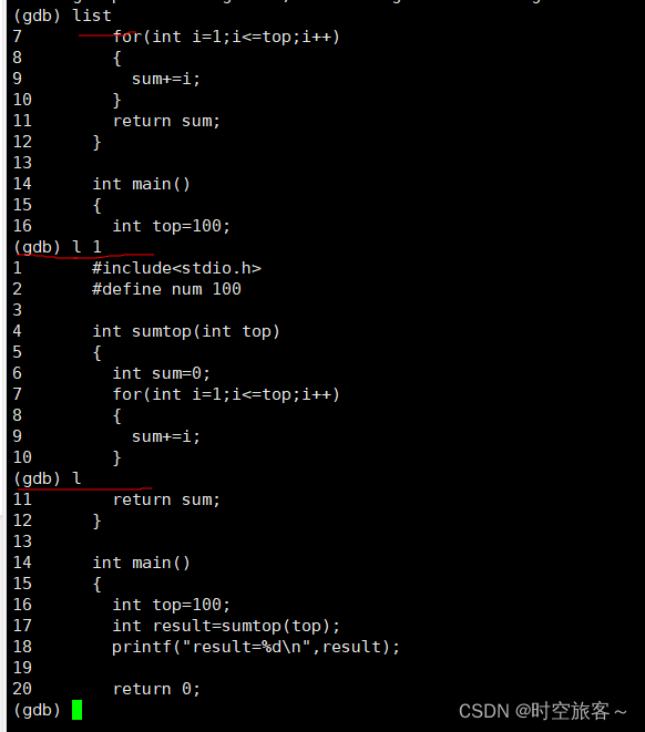会显示代码,一次显示10行,再l会接上之前代码后面显示
