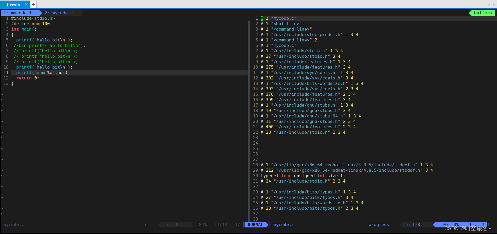 gcc -E mycode.c :开始进行翻译,完成预处理之后,就停下来不做下面的事情
