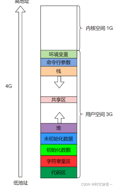 可以做到站在CPU和应用层的角度,进程统一使用4GB 空间,而且每个空间区域的相对位置,是比较确定的