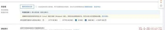 十:安全组,这个你记得勾选一下80端口和443端口,不然你弄了半天发现通过域名就是访问不了你的网站,在服务器打开又是正常的。那是因为你没有打开80端口的访问权限,所有在购买的时候就把端口打开。