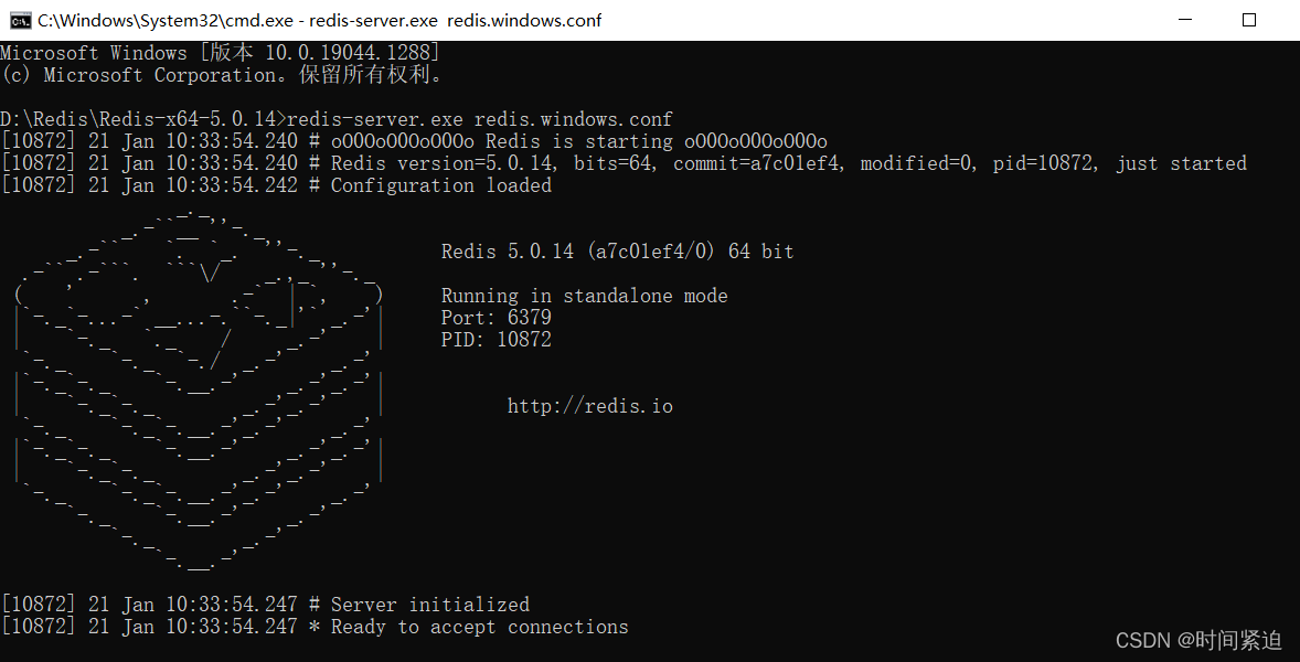 4、启动服务器,如下面格式,说明Redis安装成功了