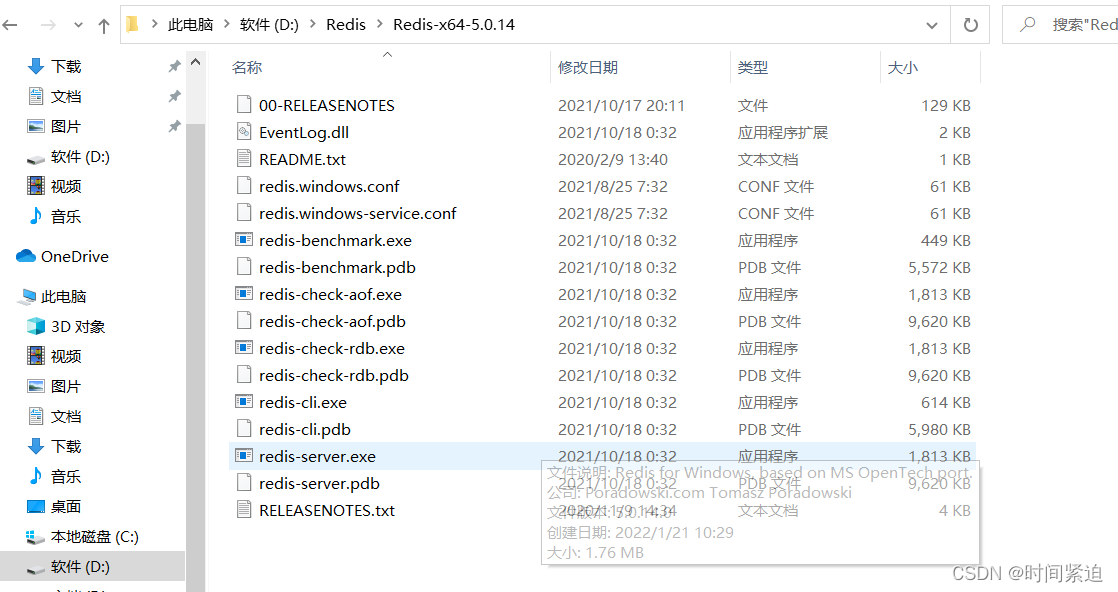 3、打开命令行窗口,切换到Redis目录,输入下面的命令行。