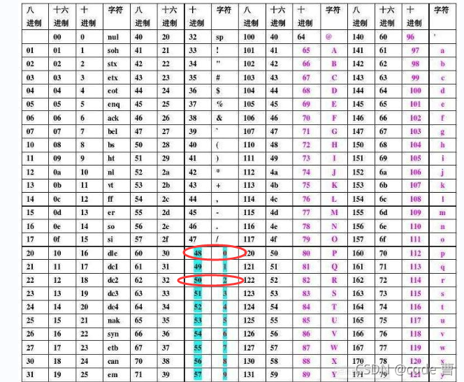 根据ASCII码值表,字符2减去字符0就是数字2。eg:‘2’ - ‘0’ = 2
