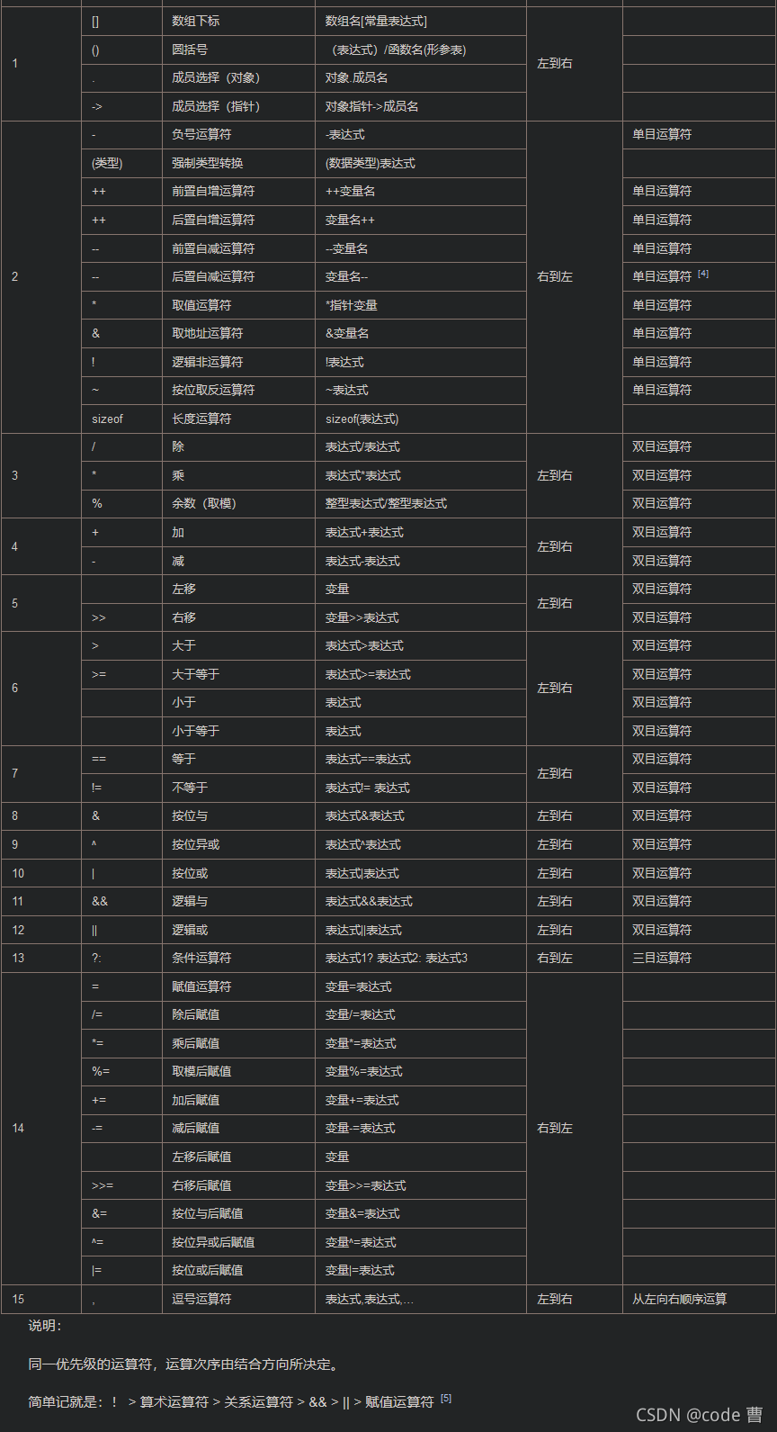 - 再判断操作符的结合性