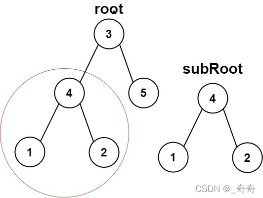 bool isSameTree(struct TreeNode* p, struct TreeNode* q) { //当两树都为空时 if(p == NULL && q== NULL) return true; //当其中一个树为空时 if(p == NULL || q == NULL) return false; //走到这里说明两树存在,比较两树的值 if(p->val != q->val) return false; //走到这里说明两树的根节点相同,继续递归 return isSameTree(p->left, q->left) && isSameTree(p->right, q->right); } bool isSubtree(struct TreeNode* root, struct TreeNode* subRoot) { //递归结束条件。当根为空时,并不是说明没有节点,可能是所有的子树都遍历过了。然后不相等返回false if(root == NULL) return false; //走到这里说明子树不为空,开始比较子树和sub相同不。 bool a = isSameTree(root, subRoot); if(a) return a; //走到这里说明不相同,继续递归左子树和右子树,其中一个相同就返回true。 return isSubtree(root->left, subRoot) || isSubtree(root->right, subRoot); }