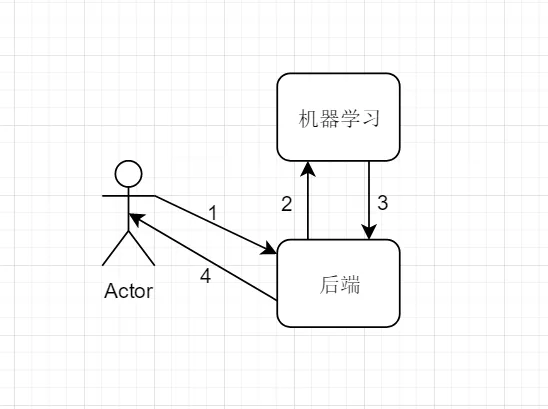 主要就是实现2-3这部分请求响应, 实现的方式挺多的, 只要有能力甚至将py封装成一个WebServer对外提供服务, 或者是选择使用消息中间件, 但是大部分消息中间的通信模型都是单向的,即发布订阅, 不过也能实现上面的业务需求