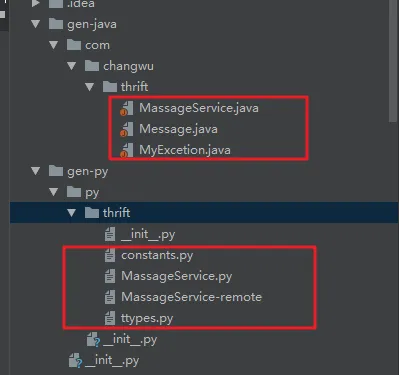 我们使用上面定义好的thrift文件,去生成我们预期的目标语言的代码