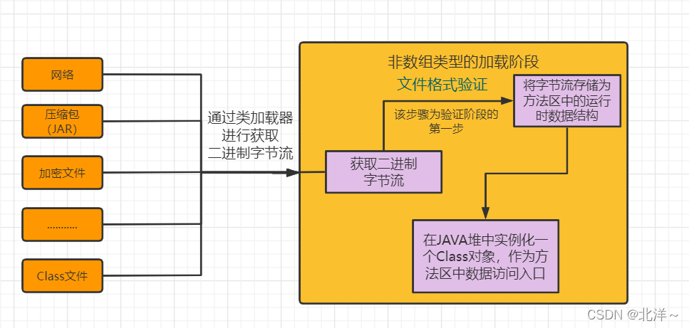 加载阶段顾名思义,也就是Class文件所代表的的 类/接口 被加载到虚拟机中。