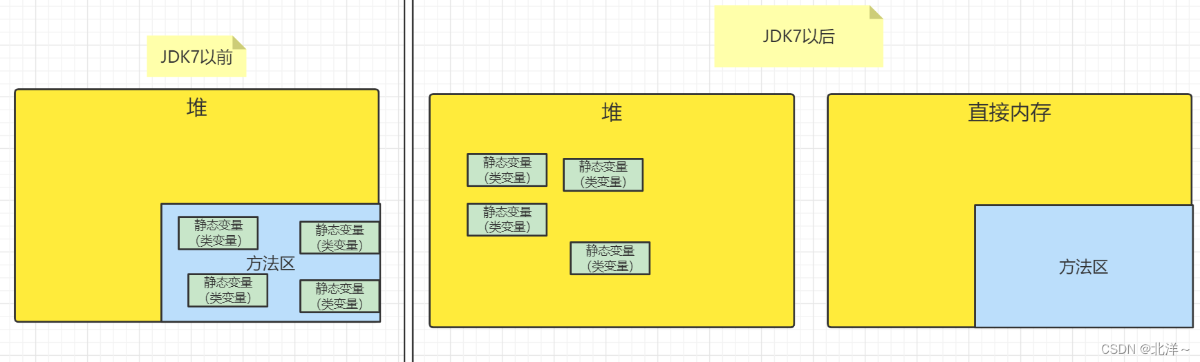 因此类变量在方法区在JDK7以前是可以这样说的,但是JDK7以后就不能这样说了。