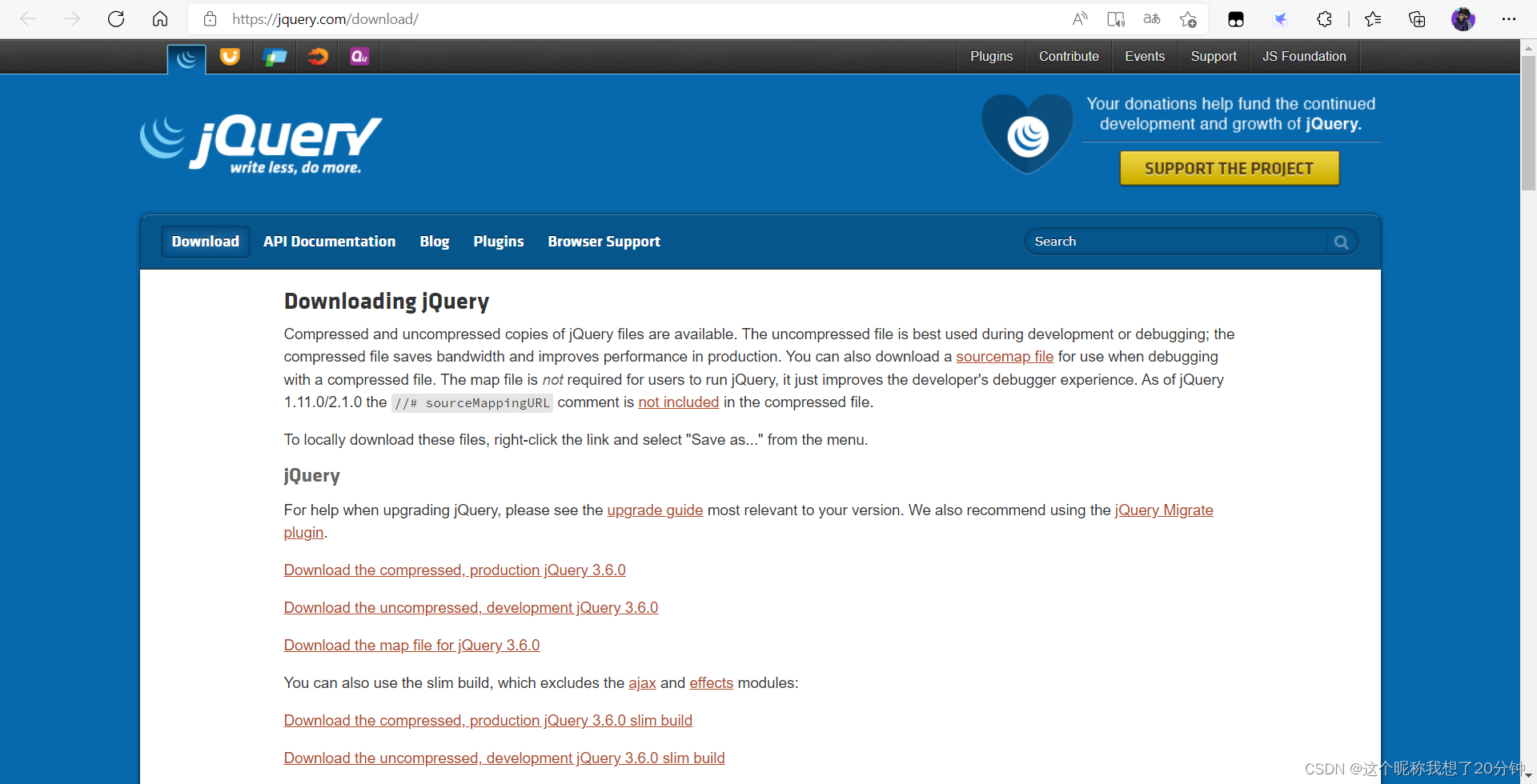 在jQuery的官方网站 http://jquery.com/download/,可以直接下载jQuery的最新库。目前jQuery有三个版本。
