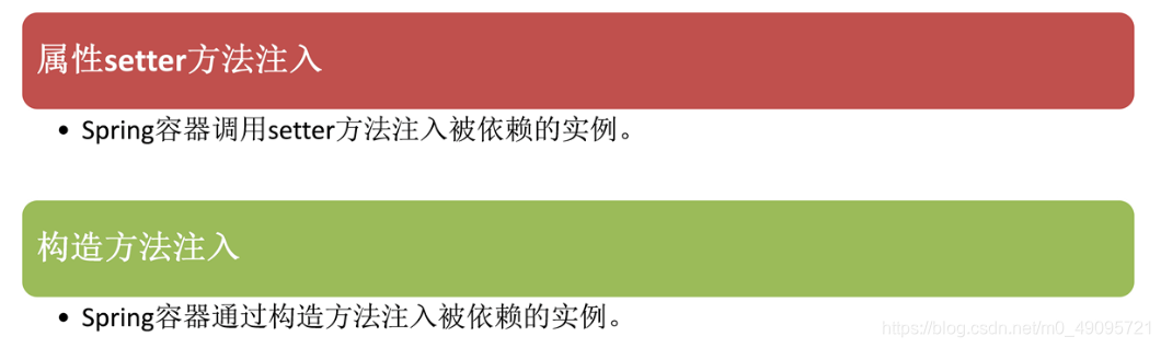 DI是IOC 的另一种表述方式:即组件以一些预先定义好的方式(例如:setter 方法)接受来自于容器的资源注入。相对于 IOC 而言,这种表述更直接。