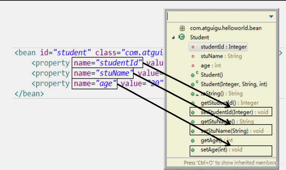 <bean id="studentSuper" class="com.atguigu.helloworld.bean.Student" p:studentId="2002" p:stuName="Jerry2016" p:age="18" />