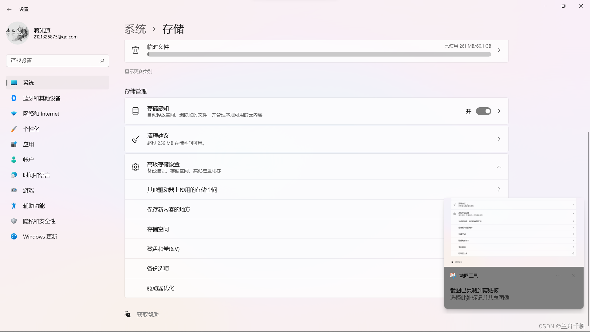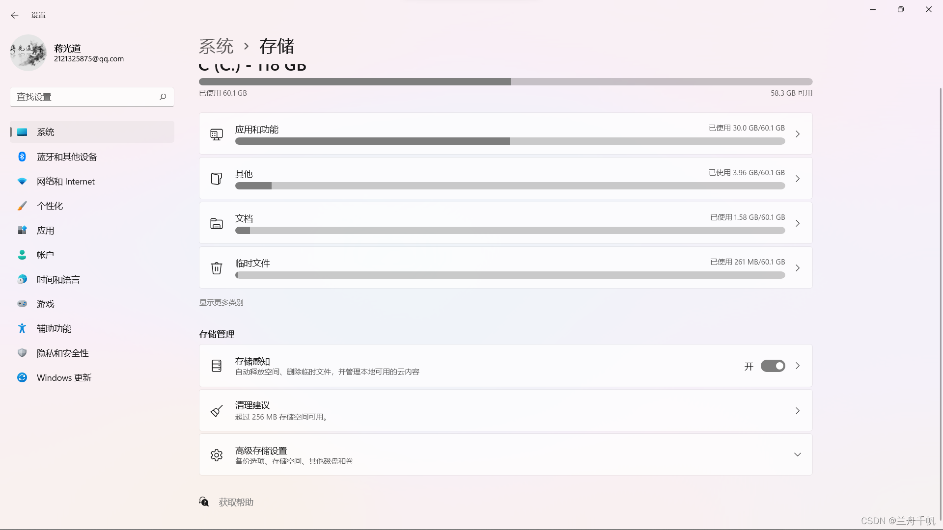 开启存储感知后,电脑会自动清理无关的垃圾文件