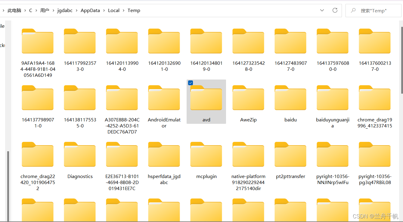 该文件夹内容全部为系统的临时文件,可以进行删除,Crtl+A,然后Delete