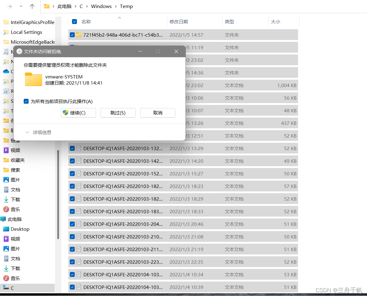占用的文件可能会提示无法删除,取消即可。删除后,还会重复出现,所以可以经常清理。