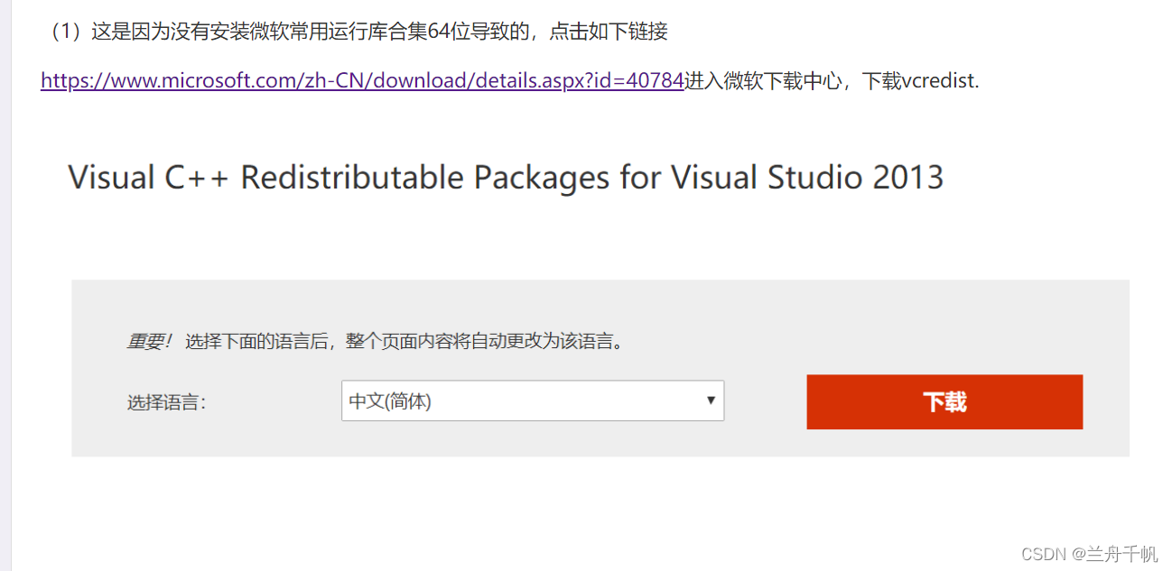 这里没有修复,于是我去网上查找了。应该是最新支持程序包,可再发行程序包,微软的包