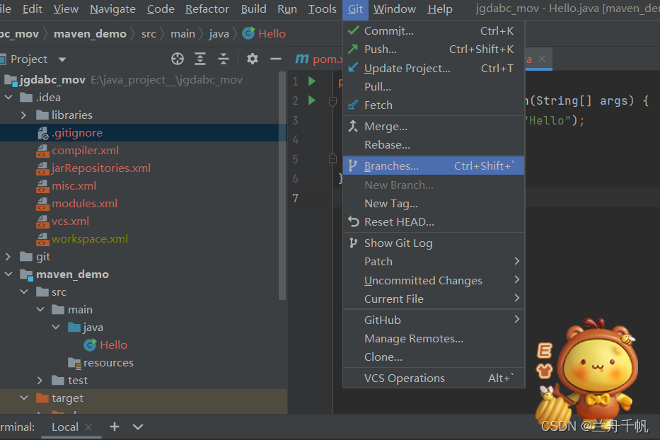 如何给你的远程仓库创建一个分支呢?当前也可以直接在远程仓库手动创建。现在我们要用git工具进行操作。