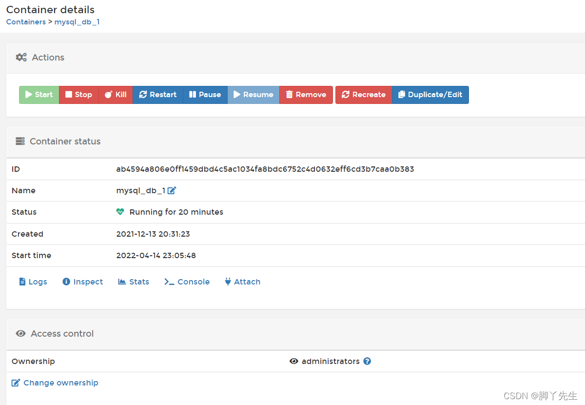 可以这里重新启动,停止,暂停和删除此容器。