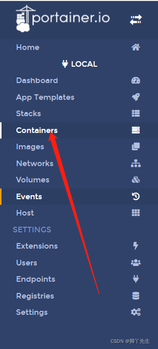 第一步:点击菜单栏Containers