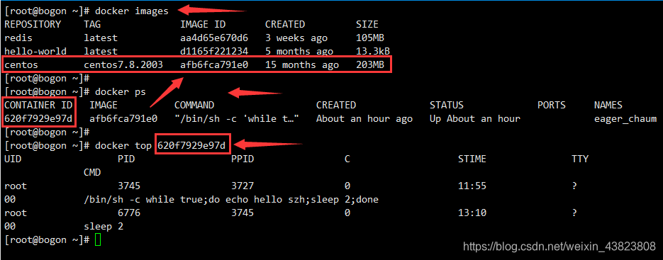前面那个docker ps是列出当前主机中正在运行的所有容器。而docker top则是查看容器内正在运行的进程。