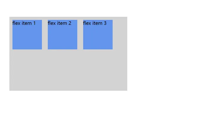 <!DOCTYPE html> <html> <head> <style> .flex-container { display: -webkit-flex; display: flex; width: 400px; height: 250px; background-color: lightgrey; } .flex-item { background-color: cornflowerblue; width: 100px; height: 100px; margin: 10px; } </style> </head> <body> <div class="flex-container"> <div class="flex-item">flex item 1</div> <div class="flex-item">flex item 2</div> <div class="flex-item">flex item 3</div> </div> </body> </html>
