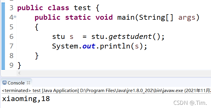 static stu student = new stu("xiaoming", 18); //在内部中创建一个对象并赋值属性