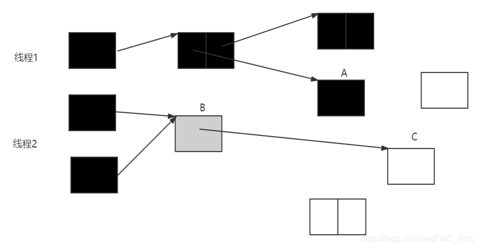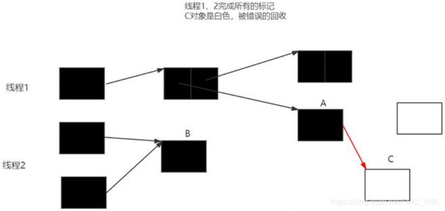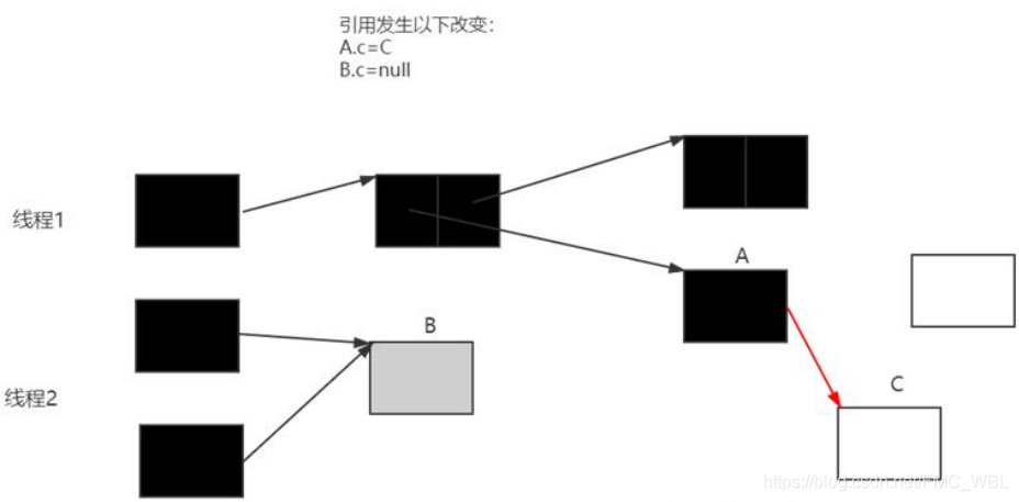 SATB 算法是关注引用的删除。(B->C 的引用)