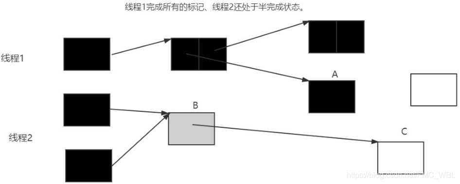 黑色:根对象,或者该对象与它的子对象都被扫描过。