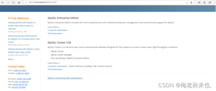 2.然后,点击DOWNLOADS,进入页面后,往后拉下去,点击MySQL Community(GPL) Downloads.