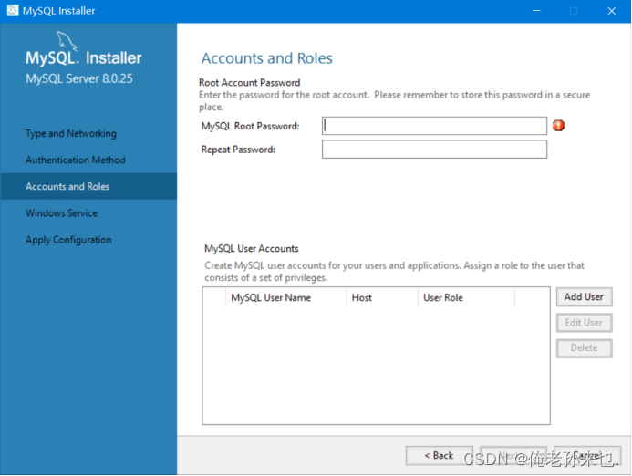 11.在MySQL Root Password处设置密码,然后再次确认密码后,点击Next.